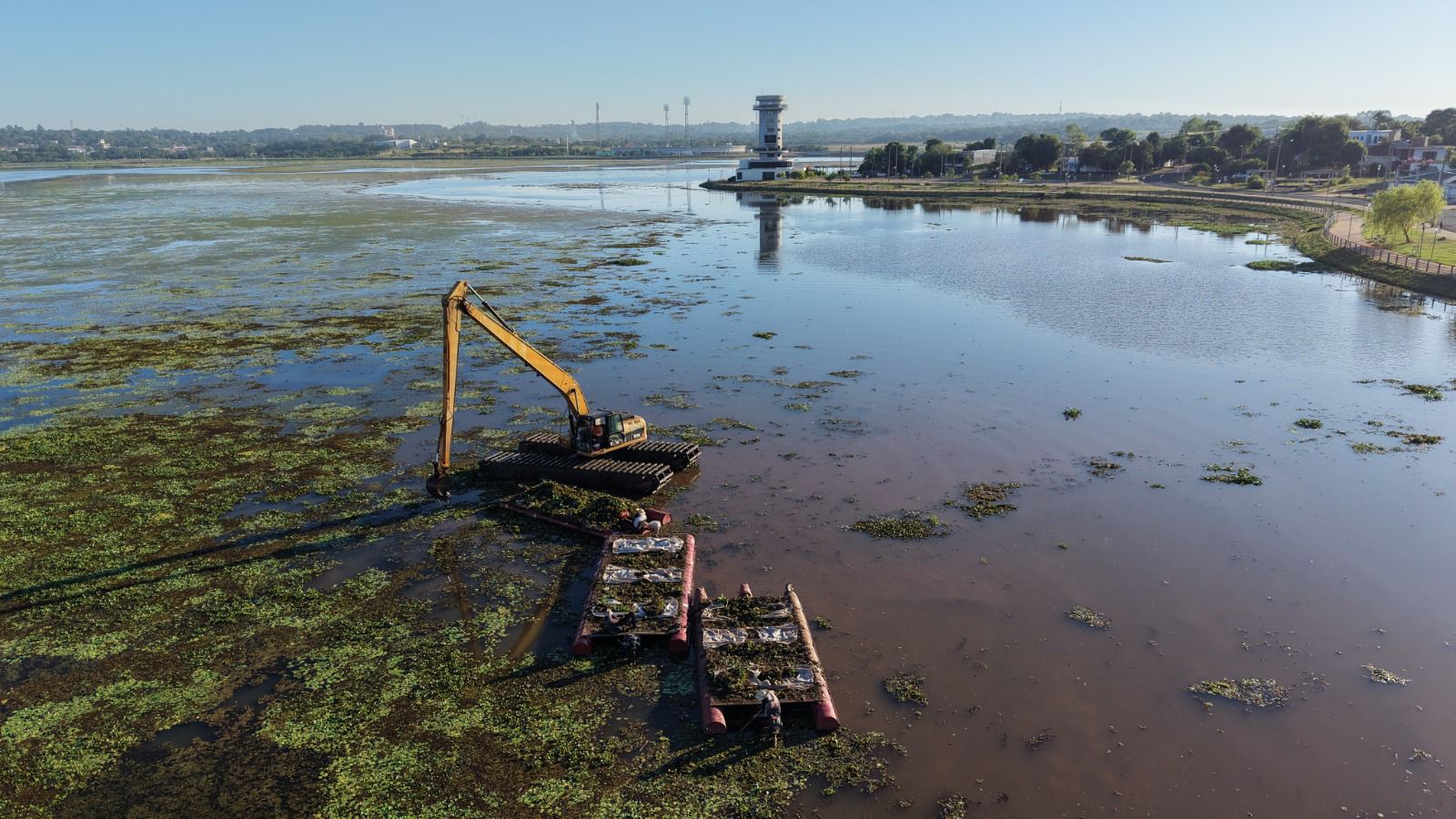 Continúan las tareas de limpieza y remoción de malezas acuáticas en el subembalse del Arroyo Poti’y, en la zona que se extiende entre los municipios de Encarnación y Cambyretá. A la fecha fueron retirados más de 3.000 toneladas de malezas, además de una gran cantidad de residuos sólidos urbanos. Los trabajos son encarados por la Entidad Binacional Yacyretá.
