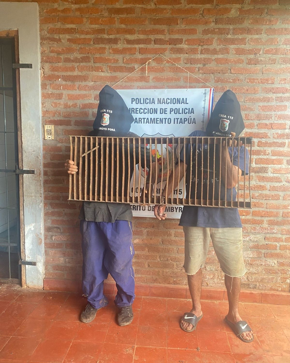 Los detenidos fueron identificados como Víctor Hugo Colinas Verdún, de 50 años, y Jorge Osmar Zacarías Galeano, de 28 años, ambos domiciliados en la zona. En el lugar se recuperó una reja metálica de aproximadamente un metro y medio, que según la denuncia habría sido sustraída.