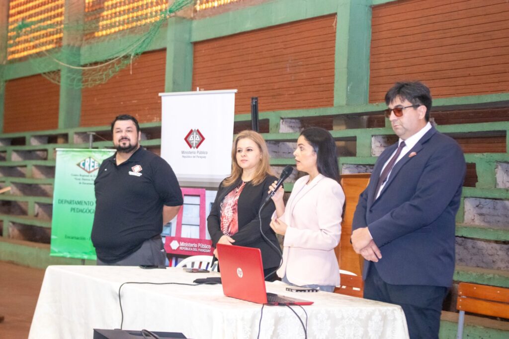 El Ministerio Público llevó a cabo tres charlas de concienciación en el Centro Regional de Educación “Gral. Patricio Escobar” de la ciudad de Encarnación, con la participación de la fiscal adjunta del Área V (Itapúa), Fabiola Molas, y el agente fiscal de la Niñez y la Adolescencia, Carlos Gómez, en el marco del programa educativo “Fiscalía en escuelas y colegios”.